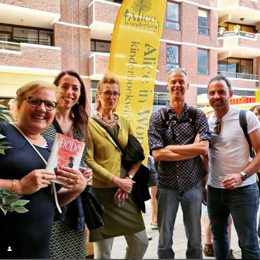 Ik ken er heel veel. En ik kan je vertellen dat ze bijna allemaal super aardig zijn. En grappig. Ik heb zelfs een Whatsapp-groep met een heleboel beroemde kinderboekenschrijvers erin. We appen elkaar bijna elke dag. Wie dat zijn, dat zeg ik niet, want dat is super geheim. Ik heb wel nog wat foto’s van bekende schrijvers. Herken jij ze?